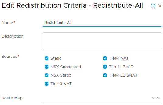 Keep the global route redistribution options enabled while selectively filter routes being advertised from NSX-T to Physical.